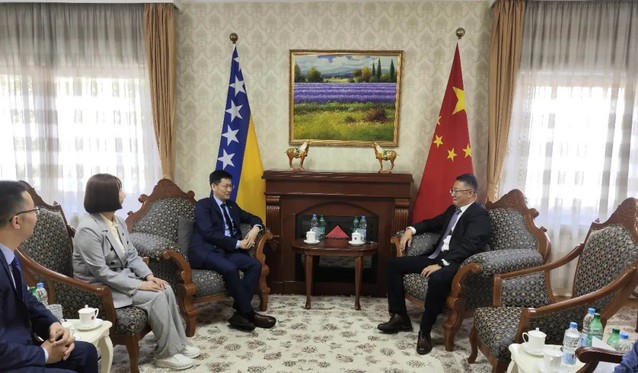 8月22日,代表团一行拜访了中国驻波黑大使馆临时代办缪大可。汤磊向缪大可详细汇报了此次出访的目的和学校与巴尼亚卢卡大学合作开展的工作。缪大可欢迎访问团一行来访,对上海健康医学院积极响应国家“一带一路”倡议,与波黑高校开展学术与科研合作表示充分肯定,并祝贺上海健康医学院与波黑高校合作共建的上海首个巴尔干“一带一路”协同创新中心揭牌成立,期待上海健康医学院在促进中波教育科研领域合作发挥更大作用。