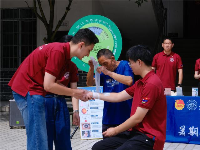 炎烈日下,我校暑期社会实践团队成员前往云南省临沧市凤庆县二道河自然村,在7月27日至8月10日期间,为当地的初高中学生们支教,进行医学知识科普,设计了心肺复苏、简单外伤处理等课程,在简单外伤处理中,我们从真实案例引入,让同学们分享自身经历,辨别了外伤的种类,外伤的基本处理方式,以及烫伤和扭伤的处理方法。重点向大家演示了骨折的固定方法,团队成员就地取材,使用纱布,木棍等材料,手把手教学,讲解详细,生动有趣。团队旨在传医知,重人文,结医智,妙笔生花征程路。
