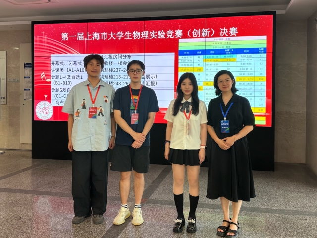 8月26日至27日,第一届上海市大学生物理实验竞赛(创新)决赛在复旦大学隆重举行。本次大赛共有复旦大学、上海交通大学、同济大学、华东师范大学等20所高校参赛,参赛项目94项。经过激烈角逐,我校荣获二等奖2项,三等奖1项。
