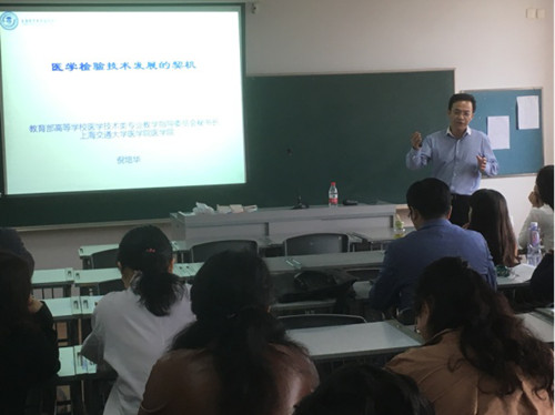 倪培华教授以《医学检验技术发展的契机》为题,从医学检验技术专业本科建设情况、医学检验技术专业教学面临的挑战、医学检验技术专业本科教材建设、医学检验技术教学质量国家标准研制、2013-2017年高等学校教学指导委员会工作计划等方面,对学院如何建设医学检验技术本科专业给出了许多中肯的建议。报告结束后,倪培华教授在本科教学改革、课程建设、教材建设等方面与各位教师进行了深入交流讨论。
