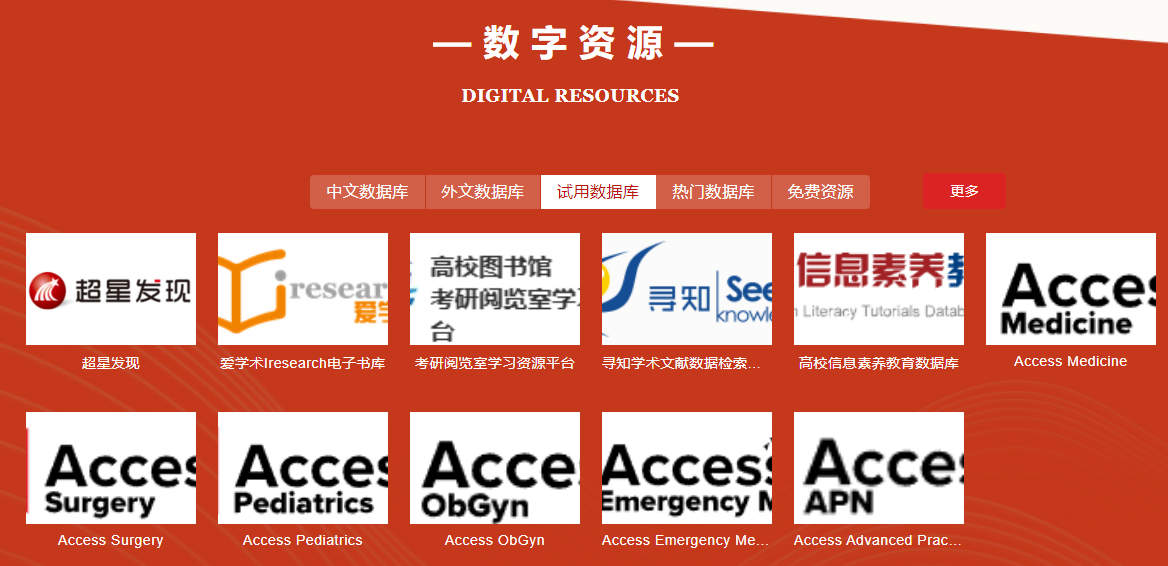本馆近期开通了“Access Medical系列产品”试用,欢迎各位老师和同学使用,并反馈给我们您的使用评价和发现的问题。