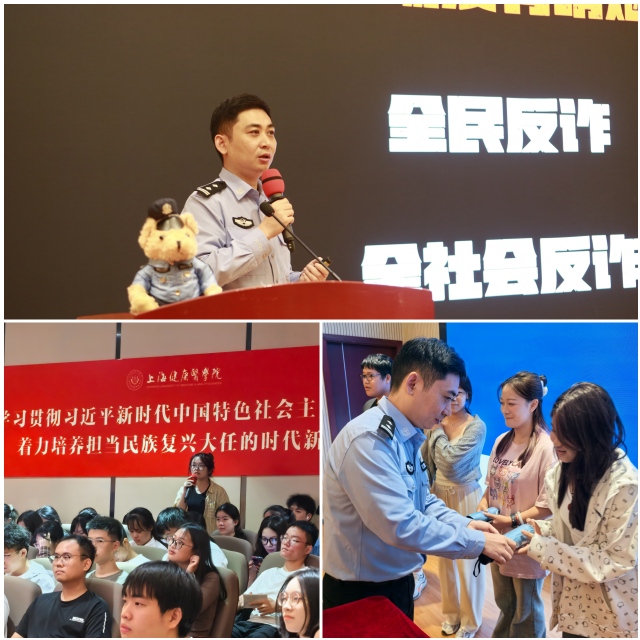 启动仪式结束后,2023年“浦东十大杰出青年”、刑侦支队反诈中心副大队长胡巧悦警官为与会学生送上一堂妙趣横生、干货满满的反诈知识课。课堂上,胡警官深入梳理诈骗犯罪的规律,利用情景代入等形式为同学们讲解近日破获的高发电信网络诈骗案例,通过和同学们积极互动,让大家了解到电信网络诈骗无孔不入以及应该如何防范。