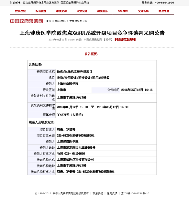 上海健康医学院微焦点X线机系统升级项目竞争性谈判采购公告