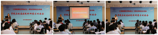 郑沈芳首先明确了此次对接会的意义,学校虽然建立的时间不长,但在短短的不到一年内,学校依托附属医院已经在人才培养方面做了很好的探索,取得了一定的实效。在学校成立一周年之际召开“学院与附属医院需求对接会”能更有效的推进学校与附属医院的合作,进一步找到切入点,为学校和附属医院的发展,也为上海科创中心的建设做出贡献。然后郑沈芳就如何对接提出了3点要求:一要高度重视和国家和上海的改革战略的对接,为我们学校的发展争取到政府和各个方面更多的支持和更多的资源。二要与百姓的需求去对接,“对接”不能仅仅对接“上”,更要对接“下”,要全方位的对接。三要与自身的发展对接,这个发展是广义的,不仅仅是指个人,也指学校和医院。