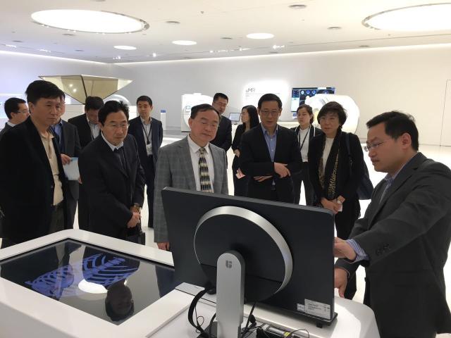 黄钢一行首先在联影医疗薛敏董事长、缪宏高级副总裁及相关部门负责人陪同下,深入公司研发与产品一线参观调研,随后双方进行了会谈。黄钢感谢联影医疗多年以来给予学校的关心和大力支持,希望双方继续在人才培养、科研合作、应用研究成果转化等方面进行深度合作。薛敏介绍了公司基本情况,表示愿与学校一起围绕产学研合作,携手奋进,共同助推上海科创中心建设。