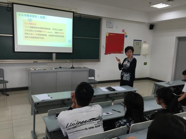 5月11日下午,班导师、副校长曹蓉蓉于浦东校区北苑为2015级康复治疗学本科班学生作了“岗位需求与医疗改革”的专题讲座。