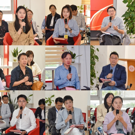 座谈会的交流围绕“机会和荣耀”、“攀登和成就”及“成长和发展”三个环节展开。第四十七届世界技能大赛健康与社会照护铜奖获得者曾小桉围绕“成长”与“传承”两个主题作发言。首届上海教育系统“申教名匠”获得者陆俊杰作了“对学生要专业指导多一点、真心关怀多一点、实践支持多一点”的经验交流。援疆教师赵印懿以“三个转变”体现责任和担当分享了在喀什理工职业技术学院的工作体会。协同科研中心周亮副教授作了以“新型显示设备视觉健康”为核心的科普分享。药学院副院长孟祥国介绍了学院数字课程建设、新学科建设以及统筹顶层设计。医疗器械学院副院长张欣以“医工结合”为重点,从大时代背景提供机遇谈如何响应学校“应用型”和“国际化”办学特色和办学定位的一些思考。临床医学院常务副院长杨光锐分享了对接健康中国需求探索人才培养模式并获得国家级教学成果奖的经验。健康与公共卫生学院辅导员赵乐宏作了“落实立德树人根本任务,坚持以学生为中心”的主题分享。医学影像学院新进教师许明珠发言表示,在今后工作中要与学校同频共振,共同携手发展。