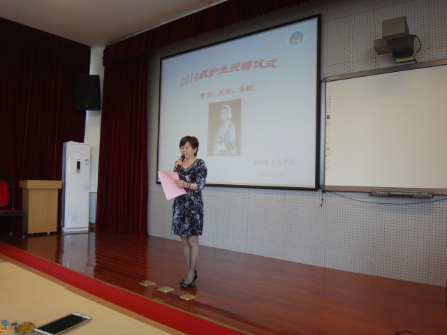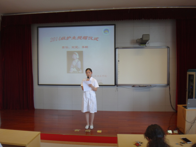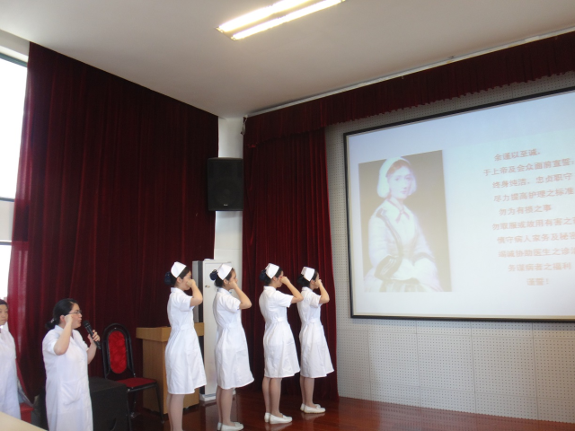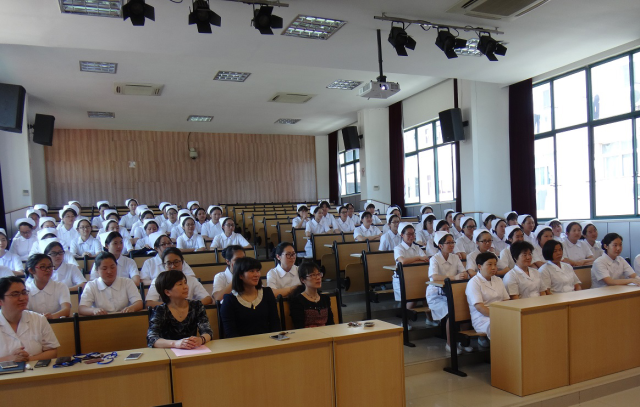 5月12日下午,14级护士班学生齐聚附属卫校金山分校东阶梯教室。附属卫校金山分校党支部书记夏美芸等出席此次活动。夏美芸告诉同学们要坚定奉献护理事业的决心,勤学苦练,肩负起无数生命的重托,并祝愿各位同学早日成为护理事业的接班人。学生代表李杨阳说:我们即将走向临床,开始实习生活,内心充满了期待。实习是一个很好地锻炼自己的机会,希望能够在实习过程中掌握更多的专业技能,遇事临危不惧,沉着应对。