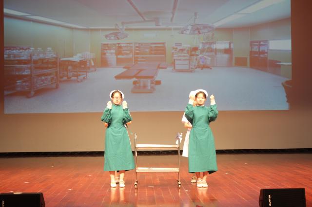 第一环节中,6支参赛队伍分别进行了礼仪展示,标准规范的礼仪姿势、站姿、坐姿、推治疗车、托治疗盘、拿医嘱单等护理礼仪一气呵成。众多表演中最令人耳目一新的是口腔护理班将七步洗手法编制成的极富动感的洗手舞,以及本科护理班的手语表演,每个动作熟练而优美,一举一动间都透露出优雅,让人感受到护理人员如白衣天使般的温柔呵护。其后,上海立达职业技术学院护理与健康管理学院的同学进行了护生礼仪表演《遇见最美的你》。