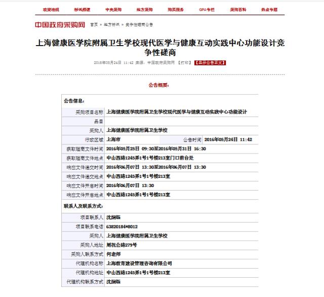 上海健康医学院附属卫生学校现代医学与健康互动实践中心功能设计竞争性磋商