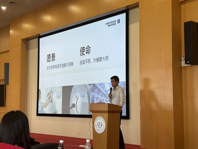 随后,联影公司一行在医学影像学院三楼报告厅进行了招聘宣讲。智能影像工程、生物医学工程等专业毕业生参加了宣讲会,另有部分研究生、低年级的学生也积极参加。宣讲会上,董瑞升详细和同学们介绍了公司的发展、公司业务以及对人才的需求、招聘要求、应聘渠道等,宣讲会现场气氛热烈。会后,同学们积极地向企业投递简历并表达自己的求职意愿。