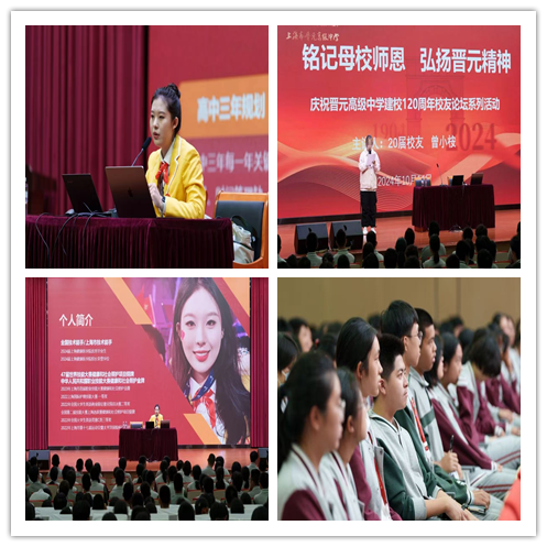 10月14日是晋元高级中学120周年校庆日,同学们向晋元母校送上诚挚的祝福。曾小桉为晋元中学学生带来了一场以“梦想、追求、挑战、成长”为主题的讲座。在讲座中,曾小桉分享了自己的成长故事,感恩从晋元中学到健康医学院求学生涯中几个跨越的成长历程,直到在全国技能大赛中拔得头筹、在世界技能大赛中取得优异成绩,再到站上世界舞台领奖台的荣耀时刻,她的故事激励着在场的每一位学生。她的演讲赢得了学生们的阵阵掌声,也进一步加深了晋元高级中学与上海健康医学院之间的情感联系。