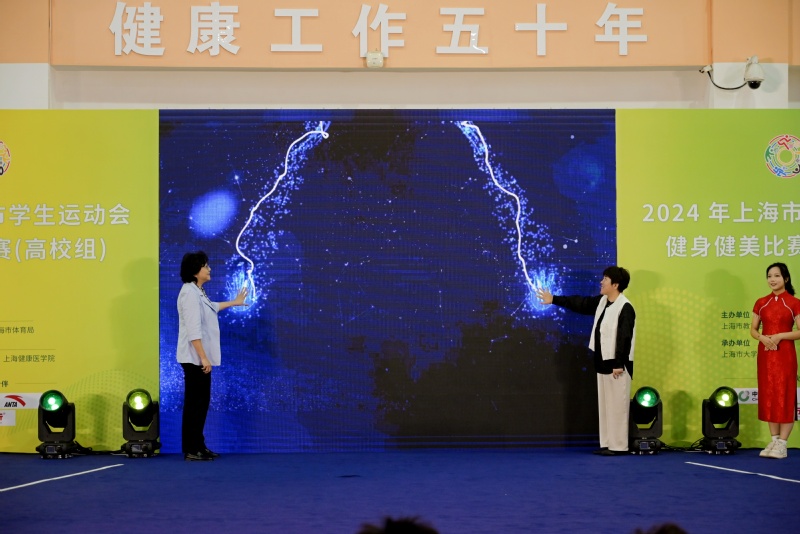 上海健康医学院党委副书记于莹和上海城建职业学院副校长仓平共同上台为赛事启动。