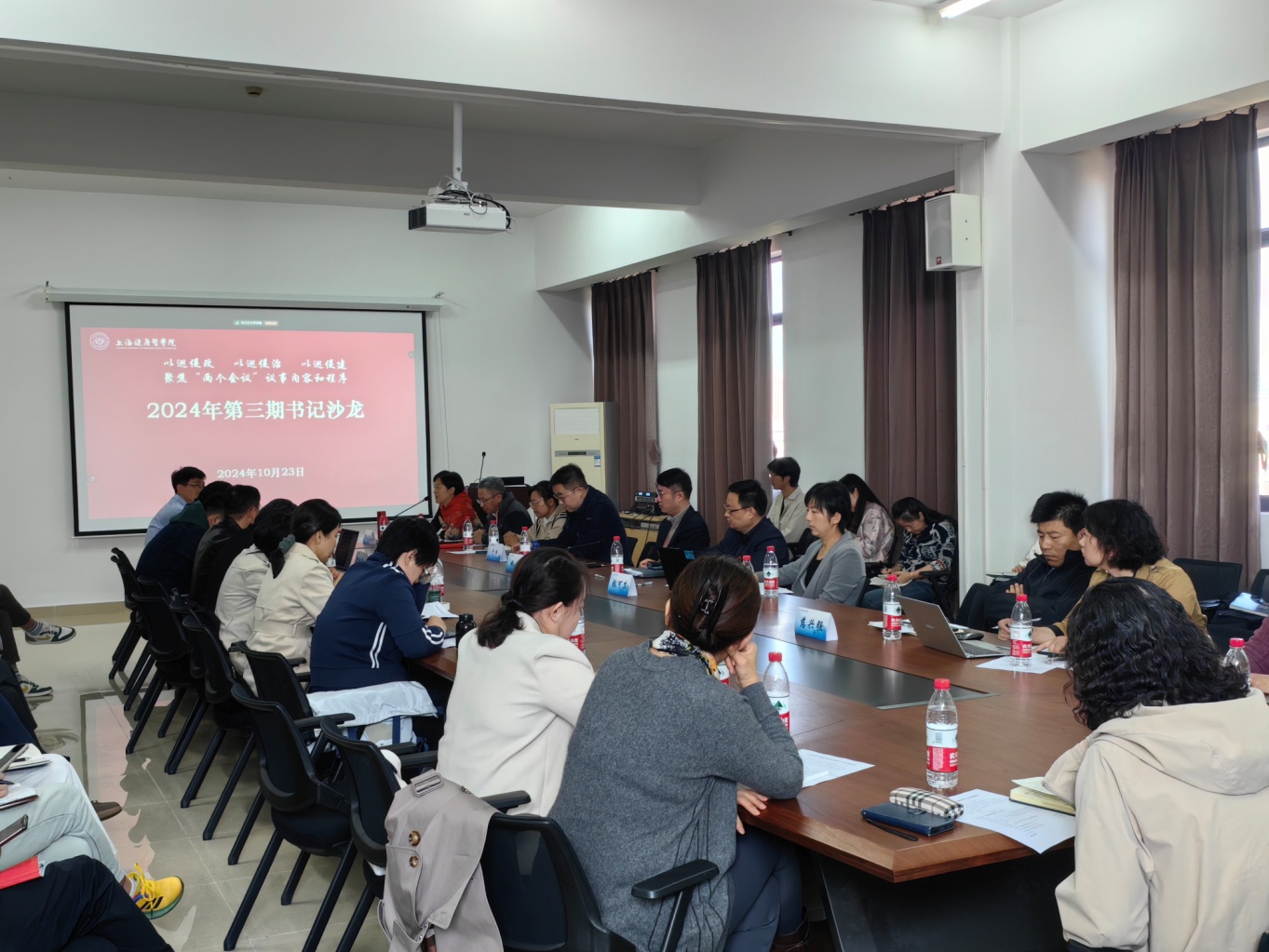 在随后开展的“书记沙龙”环节,各二级党组织书记围绕“院系‘两个会议’议事决策清单”开展讨论。护理与健康管理学院党总支书记郭戎静、医疗器械学院党总支书记李晓欧、外语教学部直属党支部书记吕永红分别从“两个会议”的决策内容、流程、案例分享等方面进行交流,他们通过分享实际案例,详细阐述了如何在议事决策过程中充分发挥党组织的政治功能,确保决策的科学性、民主性和规范性,为其他党组织提供了有益的借鉴和参考。