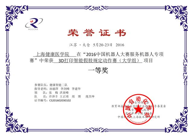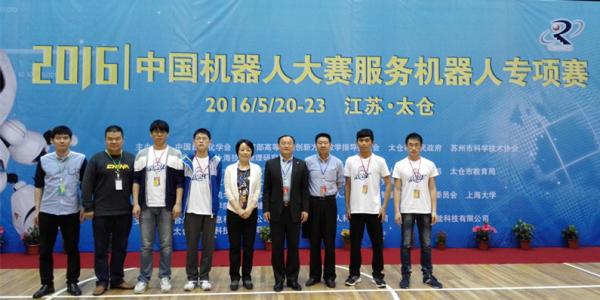 5月20日一23日,“2016中国机器人大赛服务机器人专项赛”在江苏太仓举办。大赛由中国自动化学会、教育部高等学校创新教学指导委员会主办。中国机器人大赛服务机器人专项赛含两大赛项:家庭服务机器人赛项和医疗(含大健康服务)机器人赛项。赛项贴近医疗、健康实际应用领域。我校选手不畏强敌、顽强拼搏、奋力争先,获得一等奖、二等奖各1项。