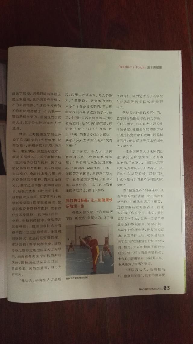 【康复健康家庭】追求卓越,促进健康——访上海健康医学院院长黄钢