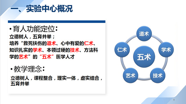 上海市基础医学实验教学中心拥有5个平台28间实验室,面积约3400㎡,设备总值5000余万元。中心秉承“立德树人,课程整合,理实一体,虚实结合,五育并举”的教学理念。先后获得市级和国家级虚拟仿真实验教学项目。中心每年承担19个本科专业约5000学生的约300000人时数的基础医学实验教学。中心教师指导大学生创新创业项目300余项,解明佳、崔宗辉等获得第七届中国国际“互联网+”大学生创新创业大赛全国铜奖,第八届中国国际“互联网+”大学生创新创业大赛上海市银奖等诸多国家和上海市奖项。中心还先后指导学生发表学术论文52篇,授权专利17项。