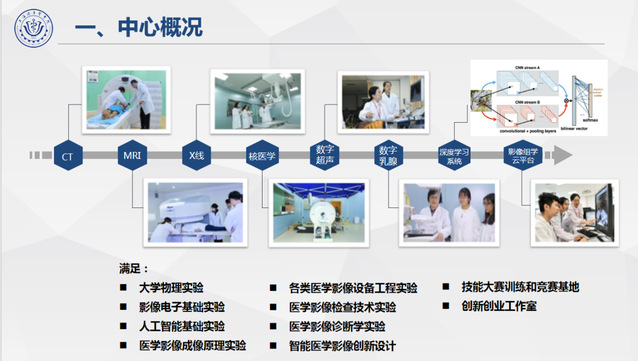 上海市医学影像实验教学中心共计3735㎡,拥有CT、核磁共振、数字化X线机、超声和核医学等5大类医学影像设备。中心聚焦现代医学影像技术人才“有温度,多维度”能力培养体系建设,积极开展实验教学研究,深入推进实验教学改革。同时,根据现代智能化影像技术发展趋势,融入AI+医学影像实验教学新内涵、AI赋能实验教学新模式等理念。构建“医教研赛”协同育人实践教学平台,形成理实一体、虚实融合、线上线下混合、校内外共享的实验教学形态。其中,《MRI检查技术》在线实验课程2020年以来开放网络实验资源惠及92所高校,实验人次达45万。