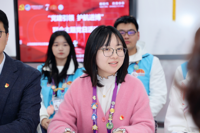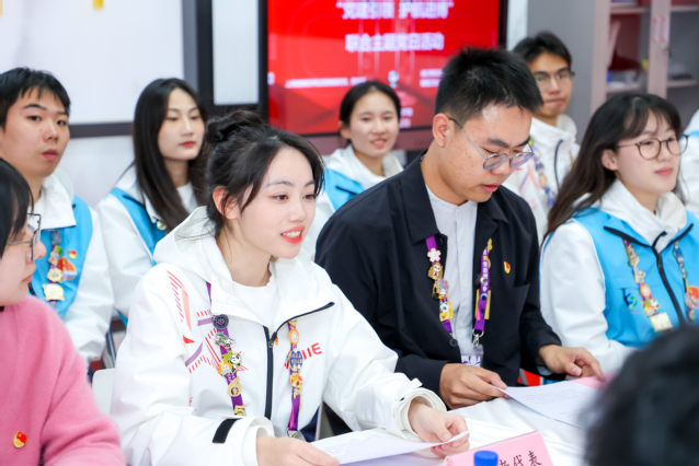 郭永瑾作面向广大团员和青年开展党的二十届三中全会精神和李强总理在第七届中国国际进口博览会开幕式上的重要致辞精神领学,指出进博会已成为中国推动高水平开放的重要平台,展现了中国作为世界大国的自信和开放姿态。首先,她代表上海健康医学院党委向市卫健委、市健康促进中心长期以来对于学校的支持和帮助表示衷心的感谢,并对全体健康“小叶子”们提出了两点期望:一是提升成色,通过进博会大思政课堂沉浸式感受高水平开放的时代脉搏;二是擦亮底色,用实际行动诠释上健医学子自信自强、刚健有为的良好形象。同时,她希望健康“小叶子”们参与进博盛会,要充分把握时代机遇,锻炼实践能力,提升综合素养,讲好中国故事,以饱满的热情、昂扬的姿态、严谨的作风,用心用情做好各项工作,诠释健康“小叶子”们的责任与担当,彰显健康学子的蓬勃力量,继续肩扛使命任务,以青春之我展现青春之上海、青春之健康、青春之中国,立足岗位、苦练本领、创先争优。