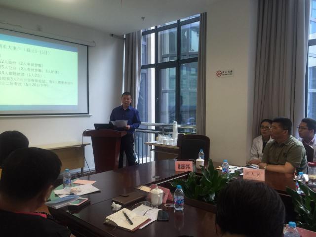 会议期间,首先周浦医院教学办钱巧慧主任就首届乡村医生周浦医院教学情况作总结汇报。针对2016年定向招及如何权衡需求及完成实际招生人数问题进行了探讨,招生办王居儒要求各委托区县实事求是申报需求,做好专业宣传,这样才能保证生源的质量,切实有效地解决社区基层卫生人员存在的质和量的缺口。临床医学院副院长秦啸龙就2016届毕业生毕业考试成绩作了分析,同时就教学结果在区县的分布,附属医院和教学基地培养方面的影响进行了总结,并且对2016届重点工作做了回顾和总结。