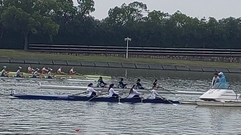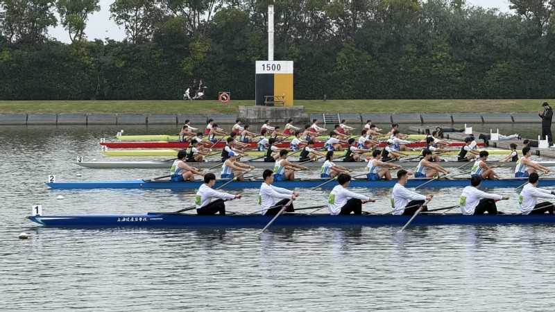发令枪响起,六支赛艇如离弦之箭般弹射出去,呼喊声、助威声、桨盘撞击声瞬间点燃了整个赛道。2000米的距离是爆发力的较量,更是耐力的比拼。500米过后,队伍的差距逐渐被拉开,那些技术好、协同性高的队伍的优势很快显现出来。我校赛艇不敌同济大学、上海海洋大学、上海科技大学、上海立信会计金融学院,以微弱优势领先于同是第一次参赛的上海南湖职业技术学院,位列第五。