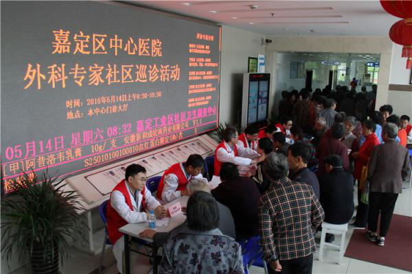 5月14日,上海健康医学院附属嘉定区中心医院外科专家社区巡诊活动走进嘉定工业区。在副院长华孙英的带队下,普外科主任医师陈跃宇、史佩东等16名医护人员热情为工业区百姓提供义诊服务,深受欢迎。