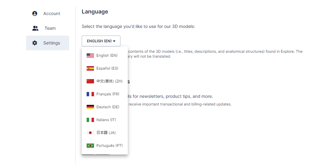该软件支持八种语言(简体中文、英文、德语、日语、西班牙语、葡萄牙语、法语、意 大利语),可在任何桌面、移动设备或AR/VR中使用,用于任何教育或临床工作流程。