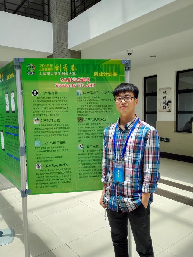 近日,由团市委、市教委、市科委、市人保局、市科协和市学联主办的2016年上海临港杯“创青春”上海市大学生创业大赛决赛在海洋大学举行。我医学影像学院15级影像2班秦纪辉同学的Students’Life 创业计划,在选送作品中脱颖而出,成为学校唯一进入现场决赛的项目,并最终获得铜奖的好成绩。