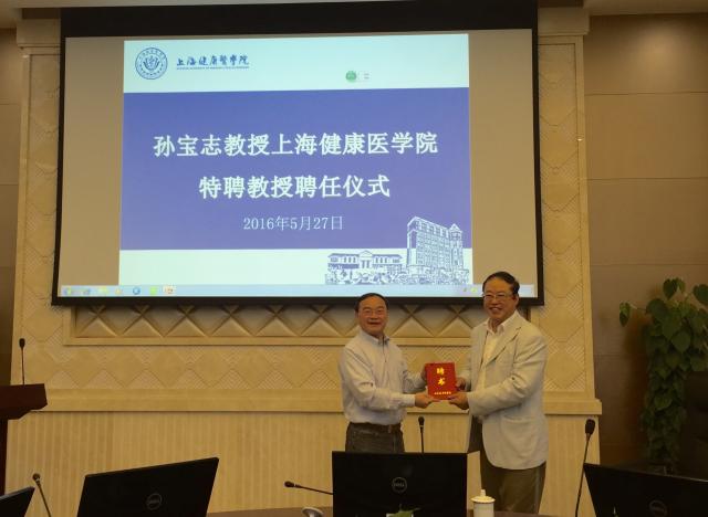 会议首先进行了孙宝志教授上海健康医学院特聘教授聘任仪式,校长黄钢亲自为孙宝志教授颁发特聘教授聘任证书,副校长于莹主持。黄钢说:作为一个新办的本科院校,新的教学理念、教学方法、教学评价是非常重要的,要以一个开放的心态,迎接一个新本科医学教育的时代。相信在孙教授的带领下,我校一定可以有一个华丽的转型。