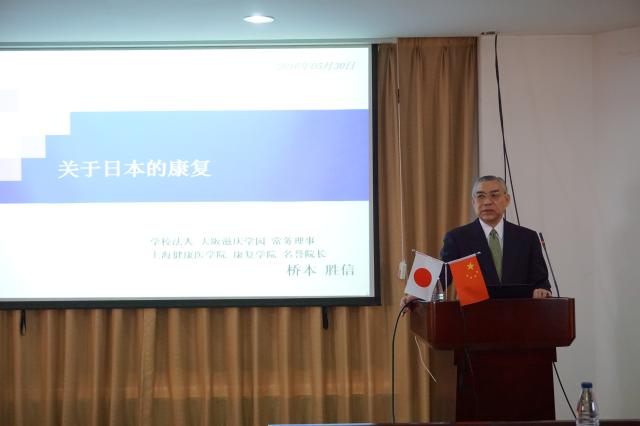 本次桥本胜信来访,还专门为康复学院师生作了专题讲座,师生就康复专业人才职业发展要求交换了意见。在来访过程中,康复学院院长王红就康复学院成立以来两校合作成果及未来工作计划作了专题报告。