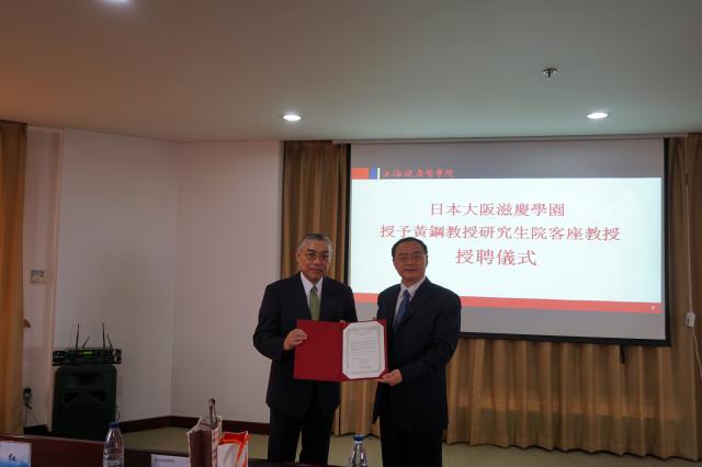 5月30日,大阪滋庆学园学院授予校长黄钢研究生院客座教授仪式在我校举行。日本大阪滋庆学园常务理事桥本胜信受学园委托,专程来校就下一步合作事项与黄钢深入交流,并正式代表大阪滋庆学园学术委员会,聘任黄钢为研究生院客座教授。康复学院和医疗器械学院负责人及有关职能部门、师生出席仪式。授聘仪式由副校长于莹主持。