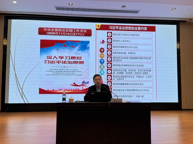 讲座中,郁能文以“学习贯彻习近平法治思想推进高校依法治校工作”为主题,从习近平法治思想和关于教育的重要论述、高校依法治校的新形势与新要求、当前依法治校的重点工作、高校学生事务依法管理等四个方面,全篇贯穿着高校立德树人、教书育人的根本任务,从全面依法治国的战略高度出发,深入阐释了习近平法治思想和关于教育的重要论述,清晰论述法治是教育改革发展的可靠保障,依法治校是实现教育现代化的必由之路。系统剖析了高校依法治校面临的新形势与新要求,明确高校唯有依循法治轨道,才能在创新发展中稳健前行,在构建新发展格局中彰显担当,实现治理体系和治理能力的现代化。