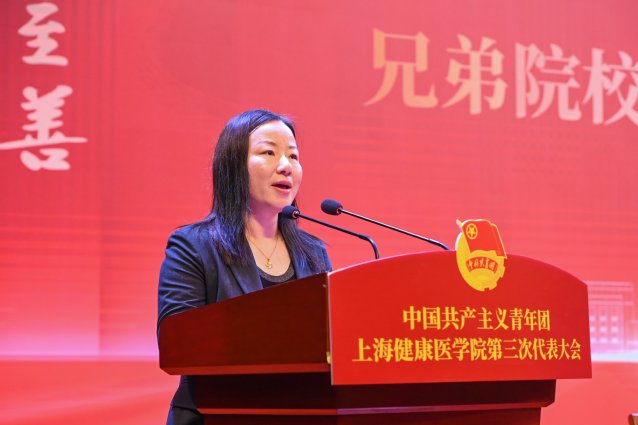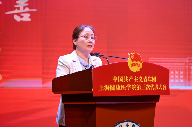 唐红梅代表学校党委对大会作总结,向新当选的团委委员表示祝贺,向参与大会筹备工作的人员致以谢意,对上海健康医学院共青团的工作和取得的成绩给予充分肯定。她希望广大团员青年牢记嘱托,紧密围绕学校中心工作,更好助力学校建设发展。向全体共青团员、团干部提三点希望:一是要坚定理想信念,做有信仰的追梦者,树立起为人类健康事业不懈奋斗的崇高理想;二是要练就过硬本领,做有能力的奋斗者,全面推进五项“青春行动”,深化“健康小橘子”青年志愿者品牌,把奉献体现在无尽地为人民服务之中;三是要锤炼品德修为,做有品行的示范者,面对复杂的世界大变局,广大健康青年不仅要在宏观意义上加深道德认知、增进情感认同,更要在具象层面上持续不断地体验和自省。