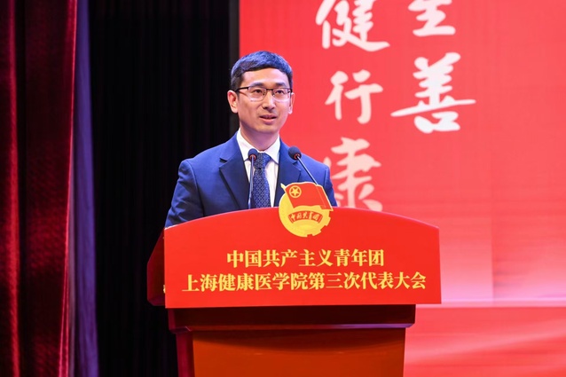 共青团上海市委副书记唐志宇代表共青团上海市委员会向大会的召开表示热烈的祝贺。唐志宇同志表示,五年来,上健医共青团以思想引领为根本,让青年有信仰;以组织建设为保障,让青年有归属;以社会实践为途径,让青年有能力;以志愿服务为载体,让青年有爱心;以文化建设为依托,让青年有品位,构建具有时代特征、医学特色、健医特点的工作格局,在校园文化建设、志愿服务、社会实践、医艺结合等方面取得了可喜的成绩,团市委对上健医团委的工作是充分肯定的!他也对上健医共青团提出了四点希望:牢牢把握“政治学校”的功能定位,落实为党育人的政治责任;牢牢把握先锋力量的重要职责,凝聚担当尽责的奋进合力;牢牢把握桥梁纽带的关键作用,塑造扎根青年的活力之源;牢牢把握先进组织的建设目标,彰显自我革命的鲜明品格。