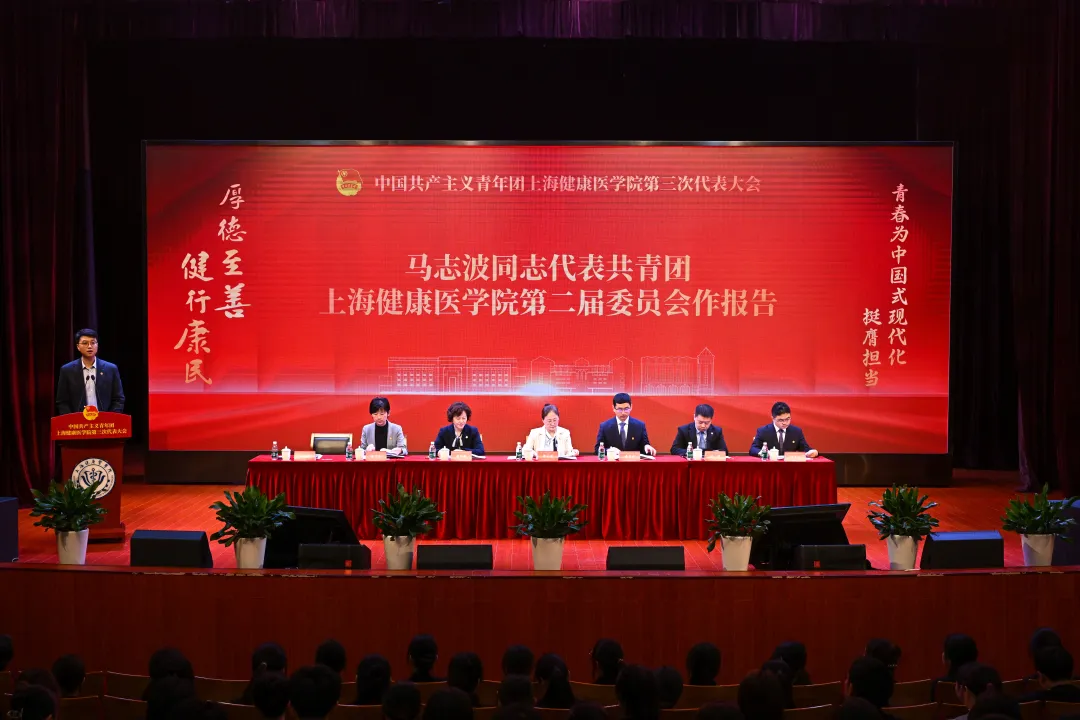 在庄严的国歌声中,共青团上海健康医学院第三次代表大会隆重开幕。大会听取了由校团委书记马志波代表共青团上海健康医学院第二届委员会所作的题为《挺膺担当砺青春,奋楫扬帆启新程,团结凝聚广大团员青年为加快建设特色鲜明的高水平应用型医学院贡献青春力量》的报告。报告指出,中国共产主义青年团上海健康医学院第三次代表大会,是在全面贯彻落实党的二十大精神和党的二十届三中全会精神,学校加快建设特色鲜明的高水平应用型医学院的新征程中,广大健康青年为民族复兴、为国家富强不懈奋斗之际召开的一次青春盛会。