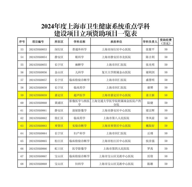 2024ZDXK0059 | 超声医学 | 嘉定区中心医院 | 姜立新 |