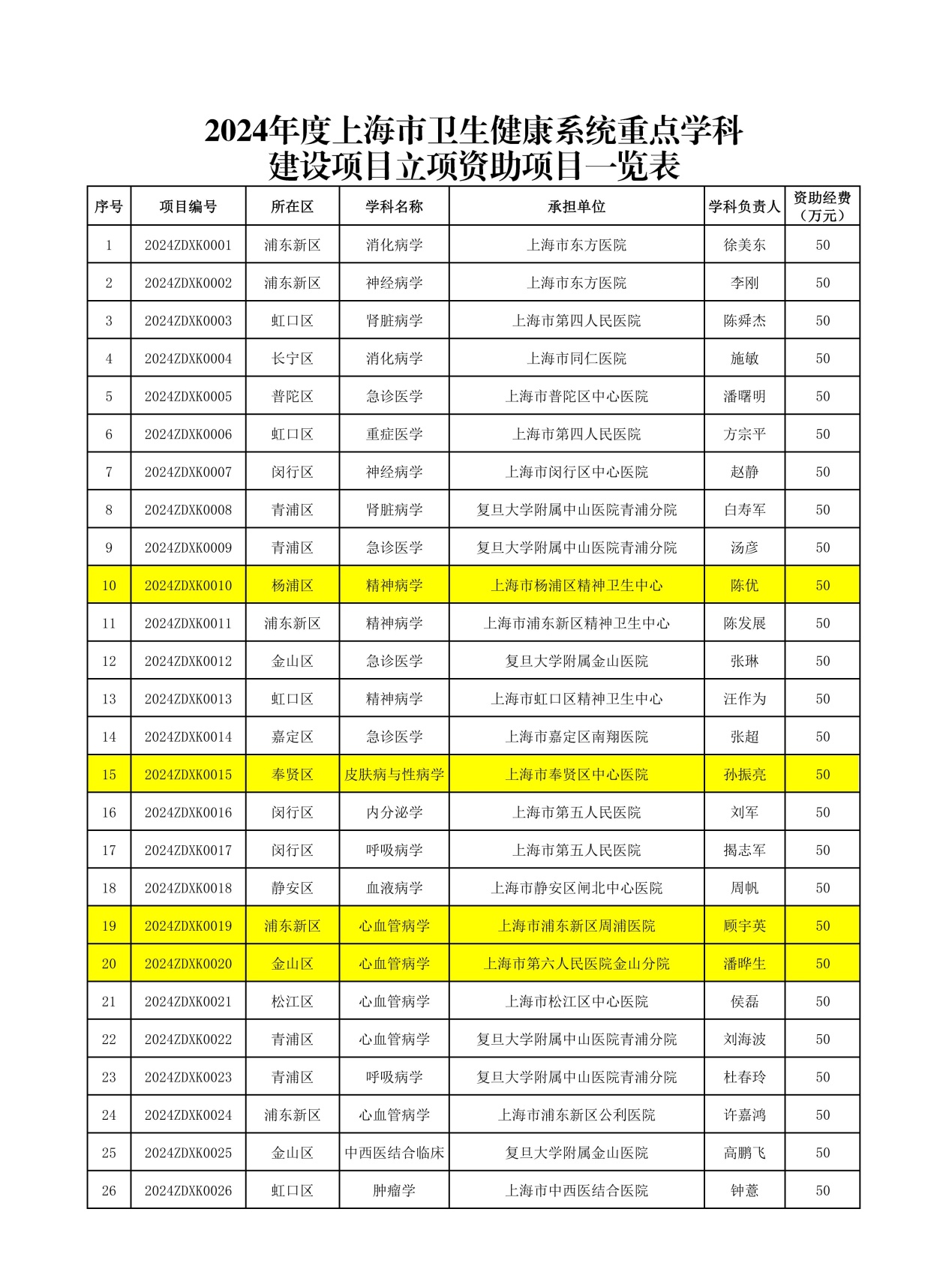 2024ZDXK0010 | 精神病学 | 杨浦区精神卫生中心 | 陈优 |