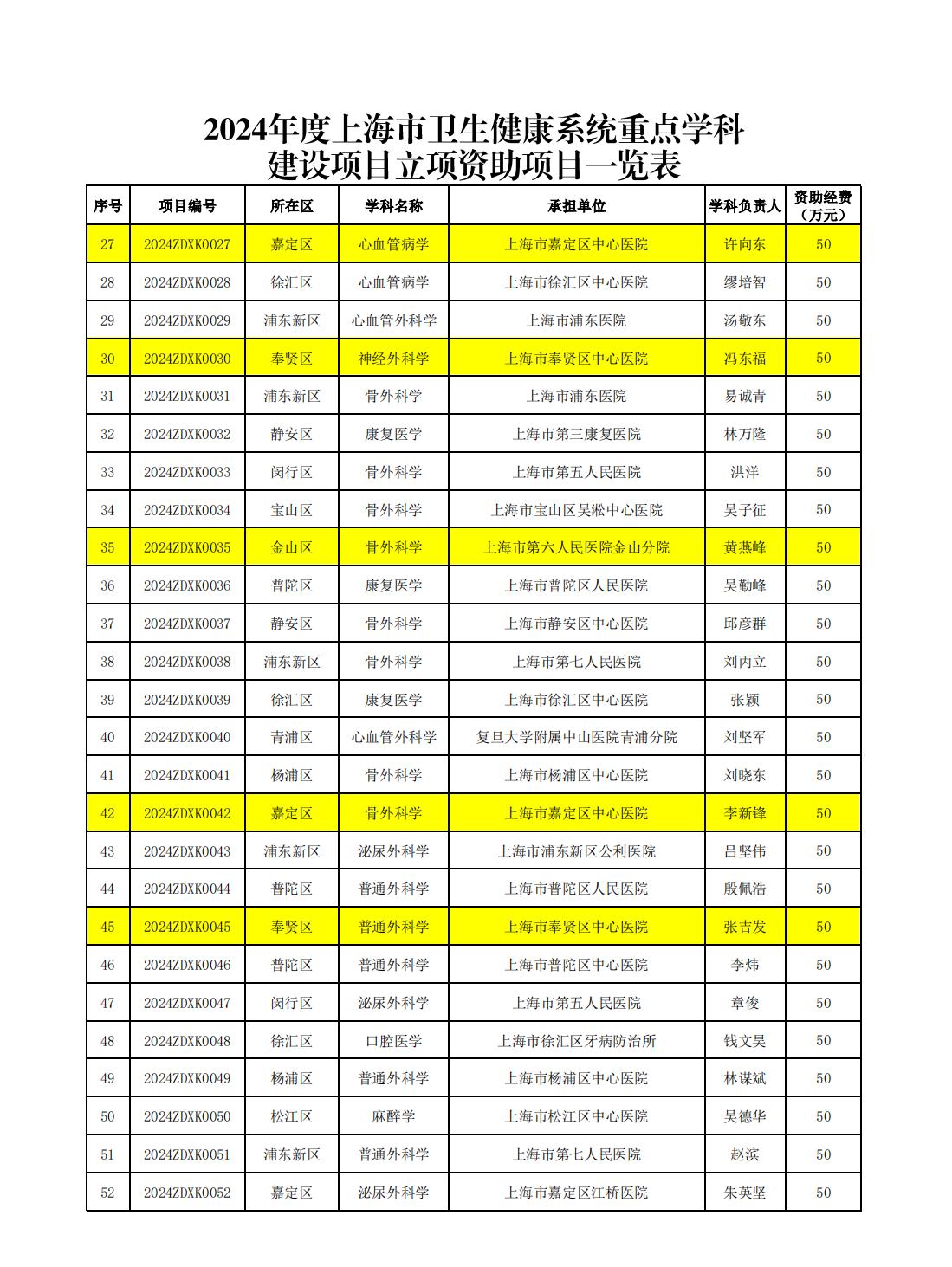 2024ZDXK0027 | 心血管病学 | 嘉定区中心医院 | 许向东 |