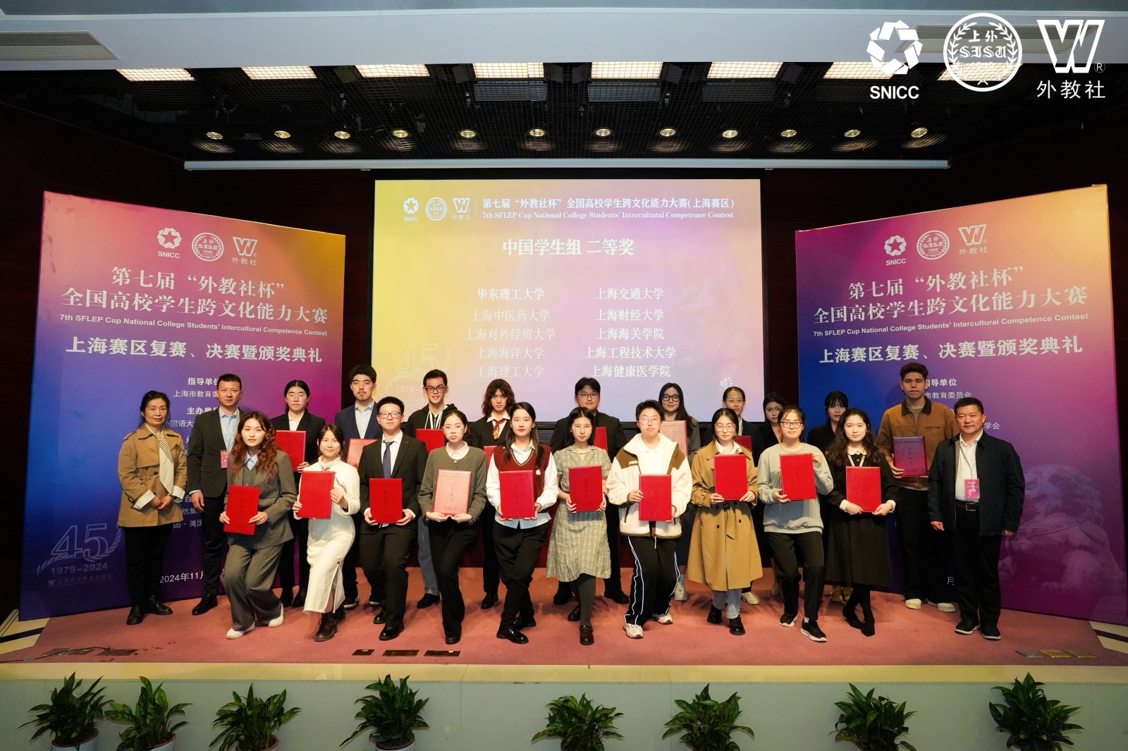 2024年度“外教社杯”全国高校学生跨文化能力大赛在上海市决赛在上海外语教育出版社落下帷幕。上海健康医学院的学生在比赛中表现优异,来自临床医学院何欣然、陈昕怡、康复学院的张仕怡组成的中国学生团队,临床医学院的Rovshenov Jummy、Akhmedgaliyeva Dilyara、医学技术学院的Adal Shugynyk组成的留学生团队分别获得上海市二等奖和三等奖,并在人气投票中位列前三名,充分展示了广泛影响力和社会认可度。外语教学部阮俊斌、李悦、沈军等获得优秀指导教师奖。