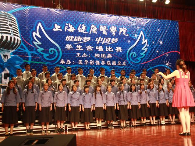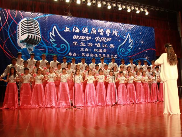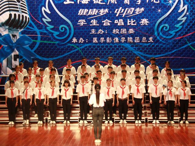上海市艺术教育委员会成员、上海星光合唱团指挥徐亮,上海师范大学泊乐合唱团驻团指挥、上海小柴天使之声合唱团指挥李嘉宇,学工部思政科科长张韵明,学工部金威、朱华英等5位声乐专业老师担任本次比赛评委。比赛期间,来自九个二级学院的十支合唱队伍逐一登场,同学们通过《健康之歌》、《大海啊,故乡》、《南泥湾》、《我和我的祖国》、《保卫黄河》、《我的中国心》等歌曲赞颂青春、歌唱祖国、讴歌时代。各参赛队时而婉转低沉,时而慷慨激昂,时而声部交错,时而独唱领衔……各学院采用多样的表现形式,展示了不同学院学子的风采,唱出健康学子的精神风貌,唱响时代主旋律,展现了“健康梦•中国梦”的活动主题。