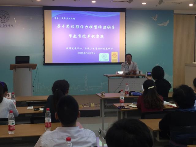 5月27日下午,正值我校成立一周年之际,由我校与中欧国际工商学院联合举办的《基于岗位胜任力模型构建的医学教育改革的实践》专题讲座在南苑7号楼403会议室举行。中国医科大学二级教授、博士生导师、辽宁省优秀专家、国务院特殊津贴获得者、教育部医学教育认证专家委员会委员、中国高教学会医学教育专业委员会教育科学研究学组组长、中华医学会医学教育分会教育研究与改革学组组长孙宝志教授应邀主讲。各学院骨干教师、相关职能部门老师、各分校教师代表、各附属医院代表出席,讲座由于莹副校长、洪寅峰副处长主持。