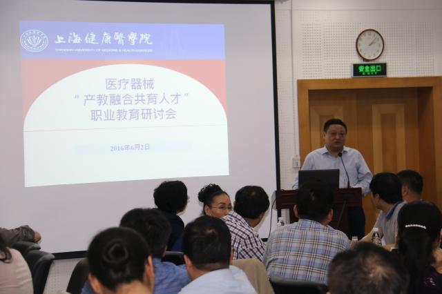 6月2日下午,医疗器械学院在杨浦校区举办了“产教融合,共育人才”职业教育研讨会,来自医疗器械行业内“校企医监研”5方共40余家单位的领导专家参会。副校长于莹出席会议并讲话。