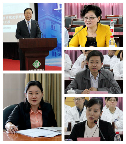 校长黄钢,市教委高教处处长桑标,上海市卫计委科研与教学处副调研员周蓉,普陀区卫计委党工委书记张文瑶、副主任鲁威出席评审会并作讲话。上海交通大学医学院吴仁友教授担任专家评审组组长。利群医院院长张兴儒、党总支书记刘兵等全体院领导、各职能部门和科室负责人出席会议。评审会由我校教务处处长张梅主持。