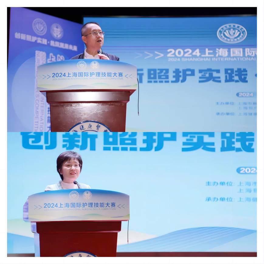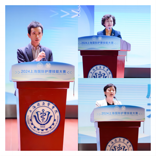 创新照护实践,共筑健康未来。11月16日,由上海市教委、上海现代护理职业教育集团主办,上海健康医学院承办的护理类技能大赛——2024上海国际护理技能大赛成功举行。此次大赛共有来自全国院校、医院和港澳台及国际院校共计52支队伍参赛,参赛人数超过100人,共有近400人次参与此次盛会。上海市教委高教处副处长刘军,上海市护理学会副理事长兼秘书长庹焱,上海现代护理职教集团理事长、上海健康医学院党委副书记、副校长唐红梅,上海健康医学院教务处副处长蒋淑敏,上海现代护理职教集团副理事长、中山医院护理部主任张玉侠,上海现代护理职教集团副理事长、上海思博职业技术学院副校长沈小平,上海现代护理职教集团顾问戴鸿英,上海现代护理职教集团副理事长兼秘书长、上海健康医学院护理与健康管理学院院长朱爱勇,以及全国和上海各大医科院校附属医院及教学医院护理部领导出席大赛开幕式。