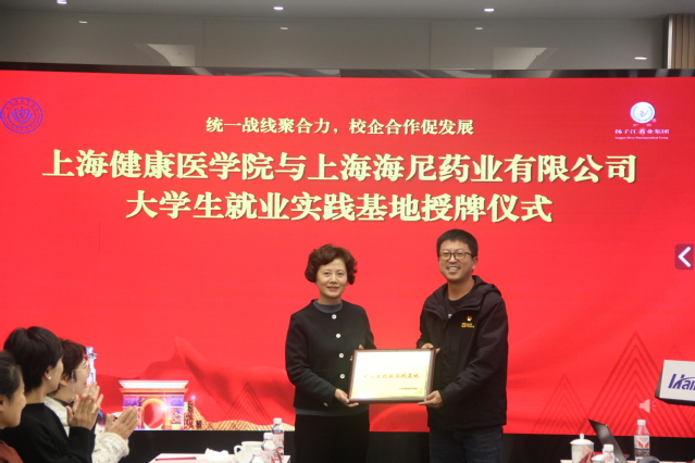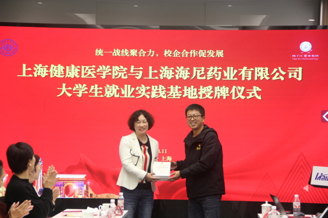 11月19日,为推动高校与企业深入合作联动,共同打造就业育人共同体,我校统战部组织党外知识分子和部分学院学生工作负责人到扬子江药业集团上海海尼药业有限公司开展双月座谈会,并举行校企共建授牌仪式。校党委副书记、副校长唐红梅,民主党派、无党派代表、统战部、学工部、医疗器械学院、药学院相关负责人参加调研座谈会;上海海尼药业有限公司、江苏海岸厂长叶迎九,上海海尼药业有限公司相关领导、上海海吉雅医药有限公司相关领导、上海海雁药学部负责人出席会议。