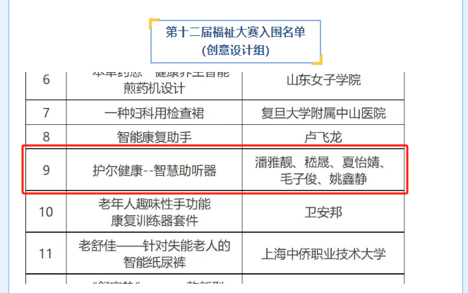 近日,我校护理与健康管理学院AHFE人人主动健康双创团队致力于研究开发服务老年人健康生活的小产品,团队经历长时间的开发研究,开展社会调研并于今年申请实用新型专利与相关软著,AHFE双创团队在AHFE核心成员濮桂萍教授的指导下AHFE双创组学生成员潘雅靓、嵇晟、夏怡婧、毛子俊、姚鑫静的成果成功入围中国老年福祉产品创意创业大赛总决赛。