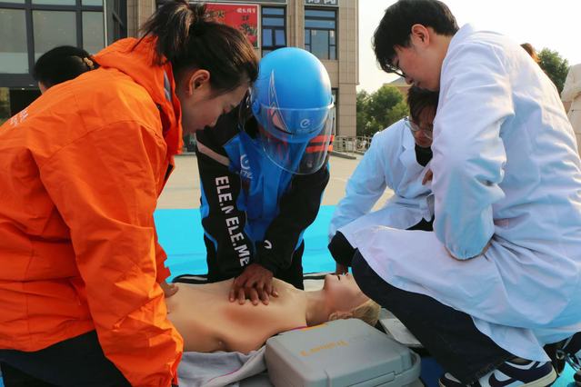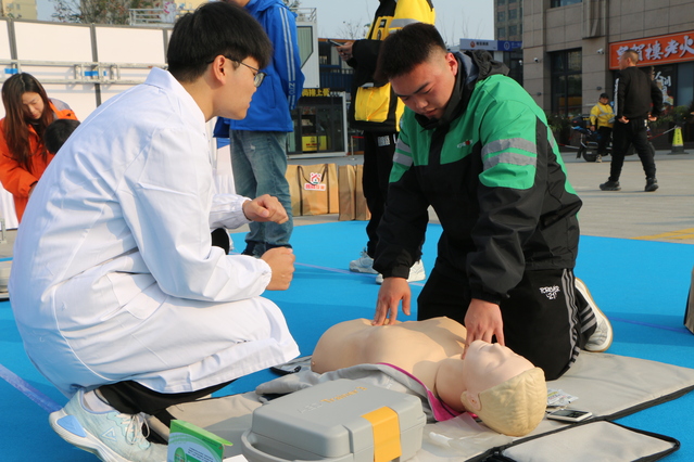 通过M9校企联动平台,校地携手打造“守护健康生命线”AED安全培训课程,来自临床医学院的本科生和我校联培研究生共同为新就业群体开展了急救专业培训及科普知识的动员和普及,提升群体应对突发事件的急救能力,为“城市奔跑者”上好生命守护课。