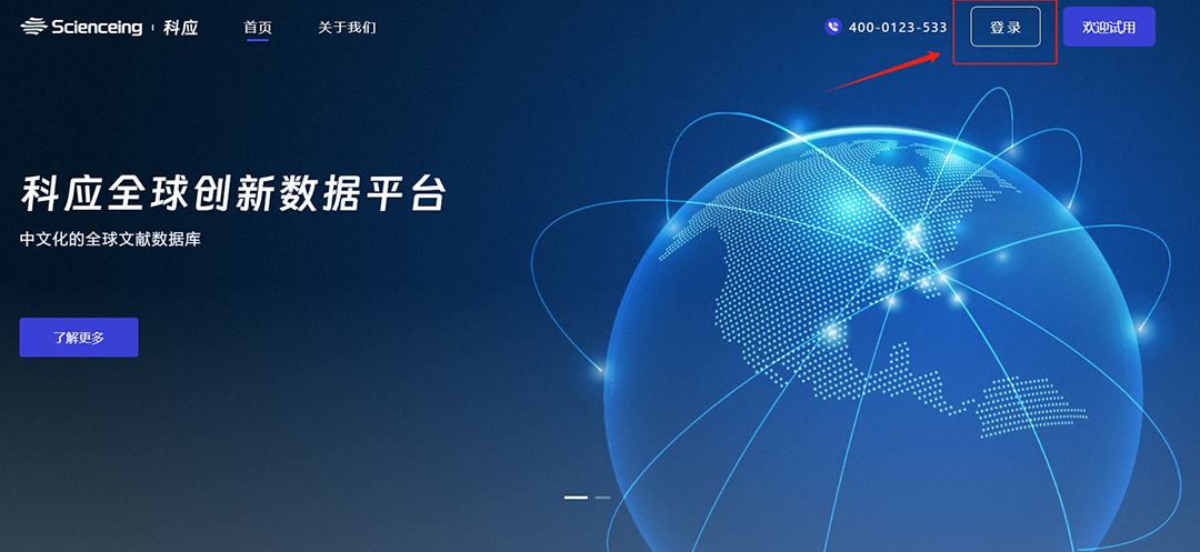 在校园网络范围内,通过电脑或平板访问平台官网:https://www.scienceing.com