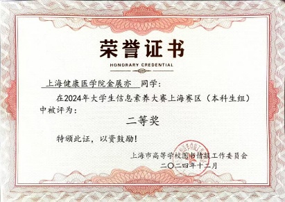 12月5日,2024年大学生信息素养大赛圆满落幕,我校参赛队伍在本次大赛中表现出色,荣获了上海赛区(本科生组)二等奖的优异成绩。此次大赛由重庆市教育委员会、四川省教育厅指导,大学生信息素养大赛组织委员会主办,上海市高等学校图书情报工作委员会协办,旨在推进教育强国、科技强国、人才强国建设,提高大学生的创新精神和实践能力。