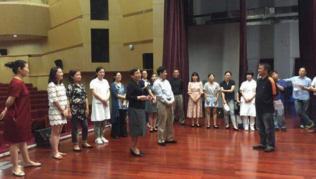 从5月31日第一次排练开始到最终站在菁菁堂的舞台,教工合唱团经历了半个月的训练。尽管工作的忙碌、合唱的训练让人疲惫,但教工们始终热情不减,克服种种困难,保证着每天的出勤率和点滴进步。比赛前夕,党委书记郑沈芳、党委副书记李明磊还特意来到排练现场为合唱团鼓劲加油,让大家倍感亲切、充满力量。
